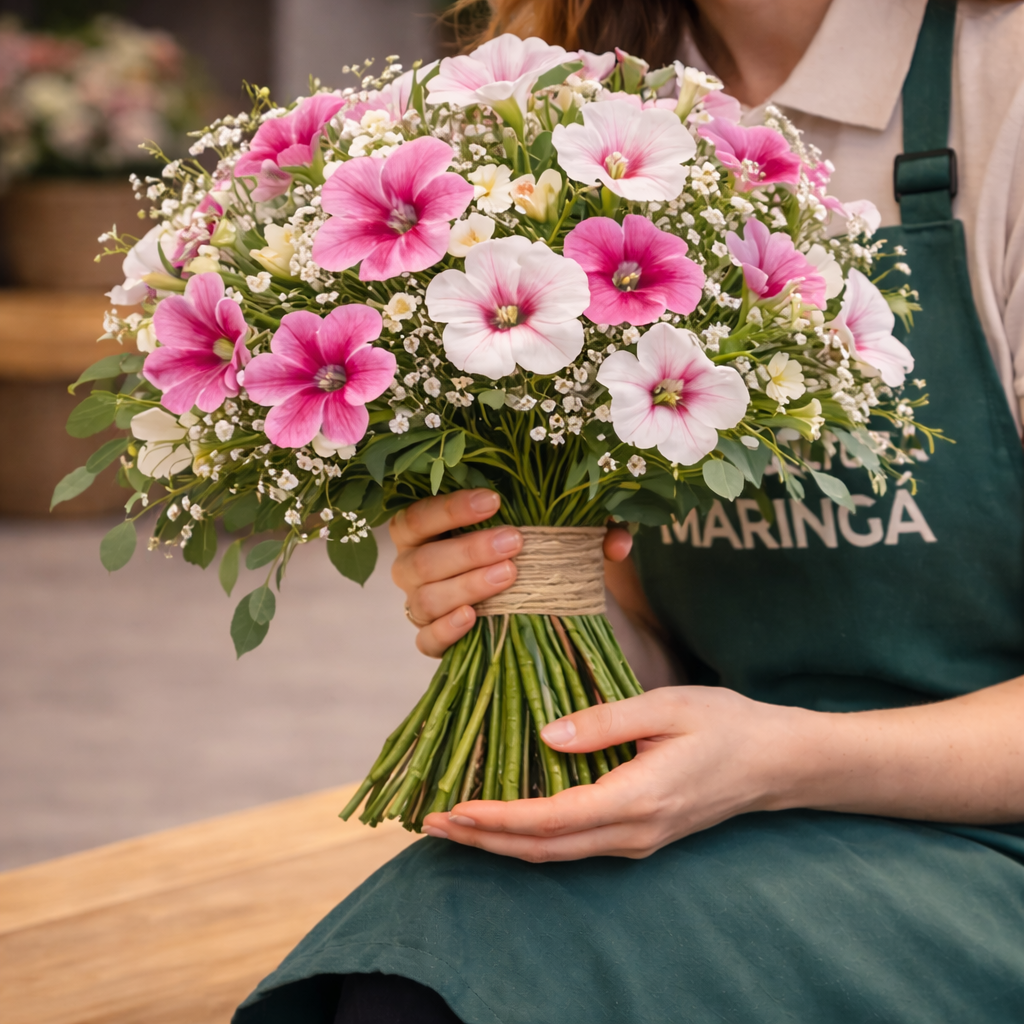 Na Floricultura Maringá, cada arranjo é criado com carinho para ser realmente único. Trabalhamos apenas com flores frescas e selecionadas diariamente, combinando cores, texturas e estilos que valorizam cada detalhe. Nossos floristas cuidam de cada composição com atenção e sensibilidade, criando buquês e arranjos exclusivos que encantam, emocionam e transformam momentos simples em ocasiões especiais. Tudo é preparado com cuidado para que a beleza das flores chegue perfeita até você.